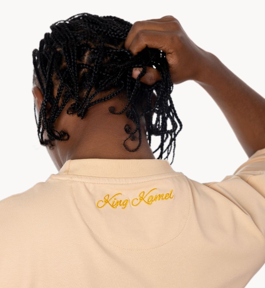 On the back, a premium embroidered King Kamel emblem sits just below the neckline, adding a refined layer of craftsmanship that sets this piece apart.